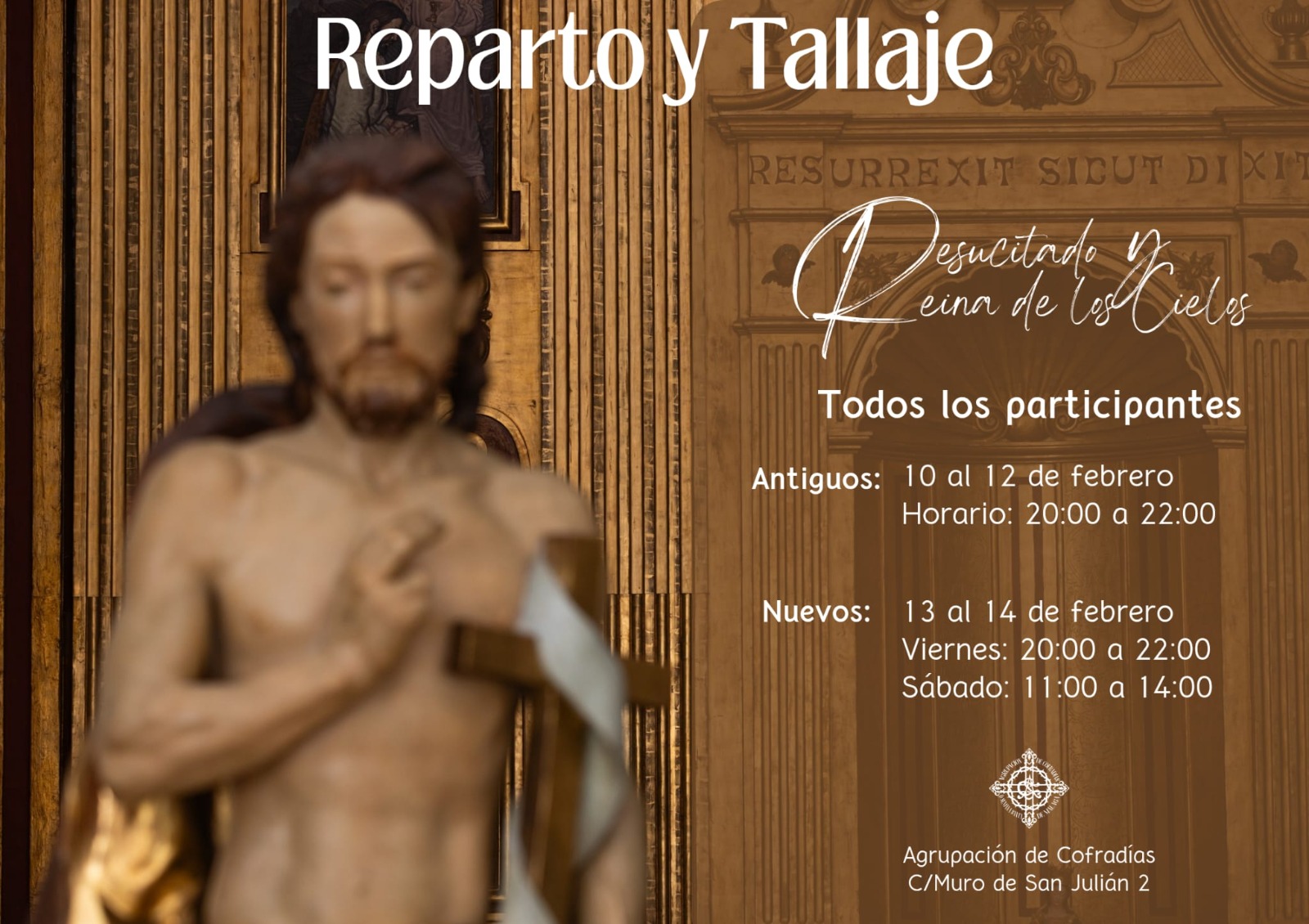 Reparto y tallaje para la procesión del Santísimo Cristo Resucitado y María Santísima Reina de los Cielos